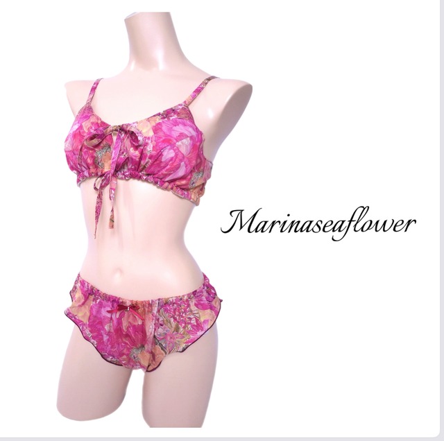 リバティのしめつけないブラとフリルふんどしパンツのセット マリーナシーフラワー