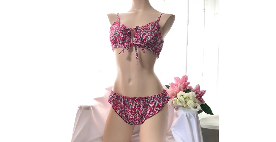 リバティのしめつけないブラとフリルふんどしパンツのセット