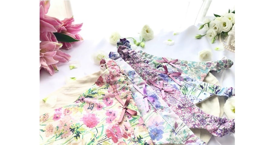 リバティのしめつけないブラとフリルふんどしパンツのセット シンクオブミー