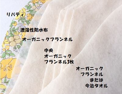 中布:厚地オーガニックフランネル4重、透湿性防水布